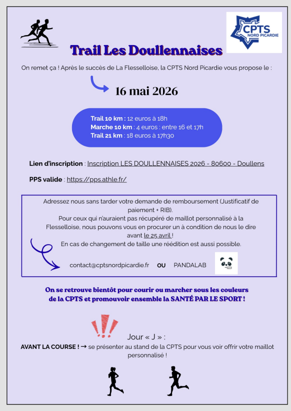 🚀Nouvel Ă©vĂ©nement de la CPTS : Trail Les Doullennaises, le dimanche 16/05/2026🏆